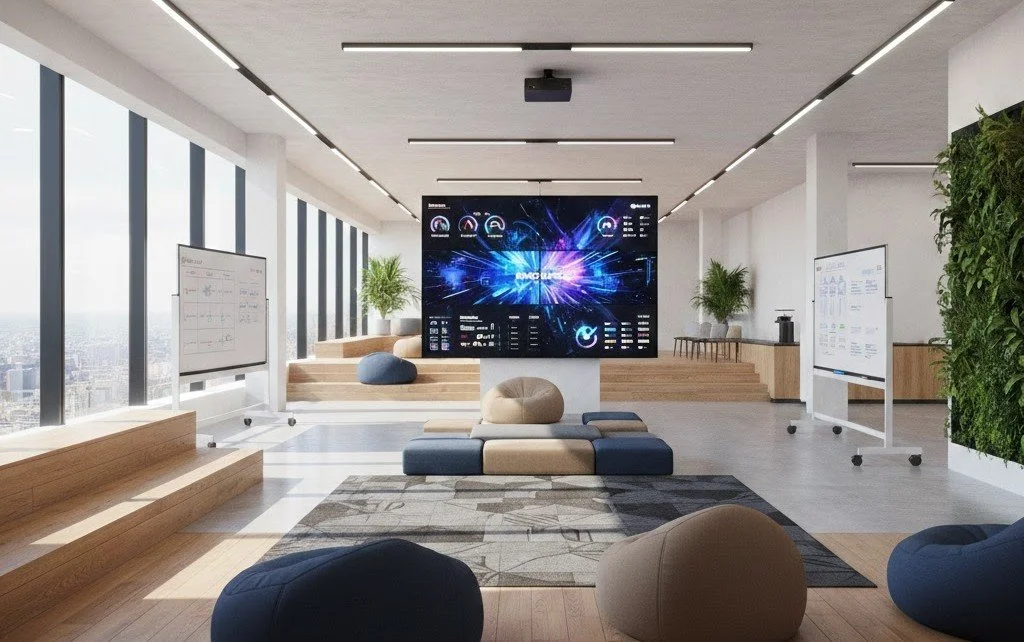 Ingeniería de la Fluidez: Optimizamos el espacio eliminando las barreras invisibles que frenan tu operativa. Diseñamos entornos donde la colaboración surge de forma orgánica y la concentración se protege.